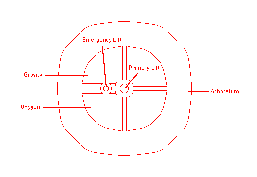 Floor 3 - Arboretum & Life Support: The arboretum if where all of the food is automatically grown and oxygen is made, and is a beautiful place to visit to boost moral. Life support is comprised of two rooms, gravity and oxygen. Gravity is where the artificial gravity is made for the whole station. Oxygen is where all the oxygen is redistributed throughout the station.